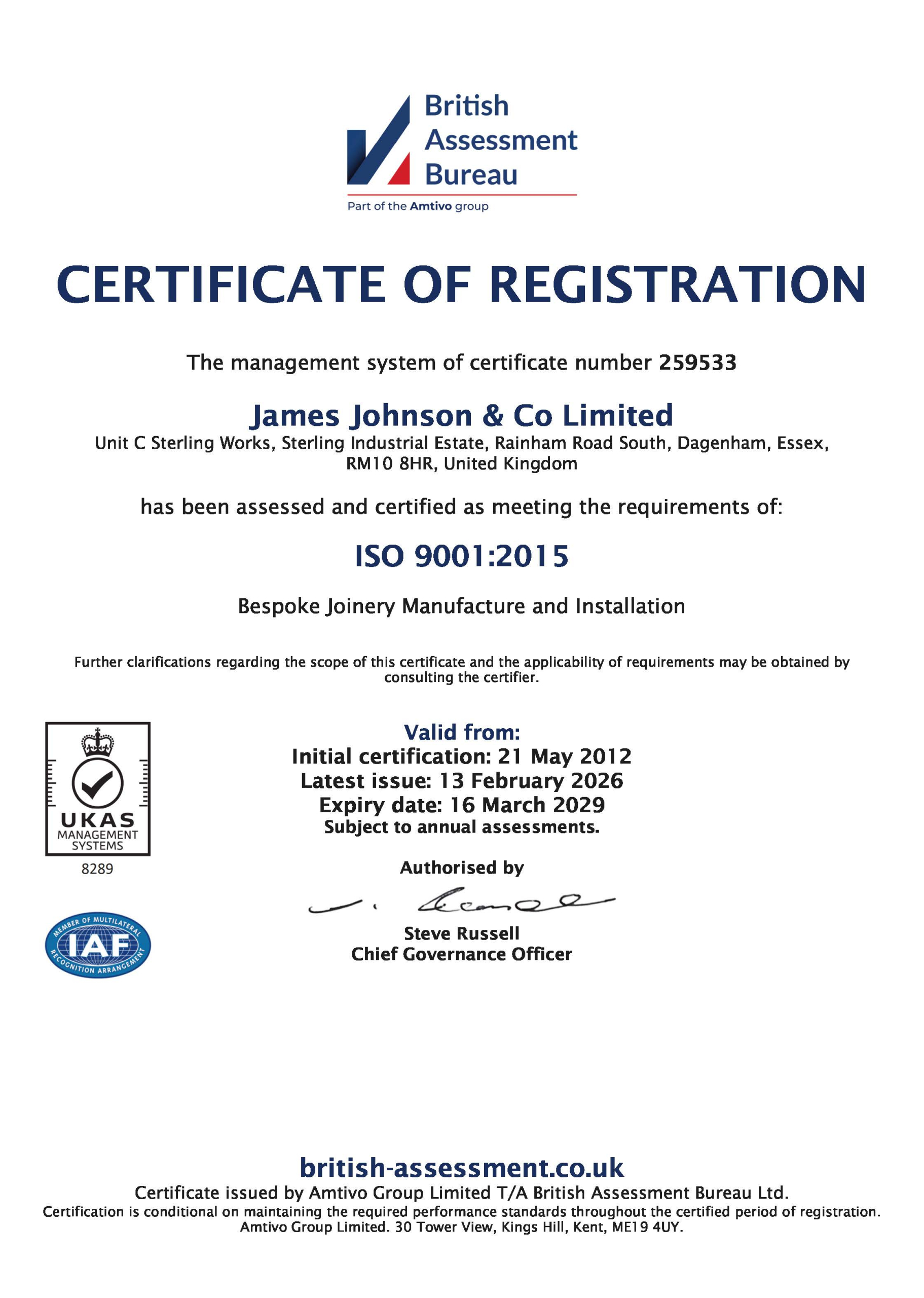ISO 9001 Certificate expiry 16-03-2029