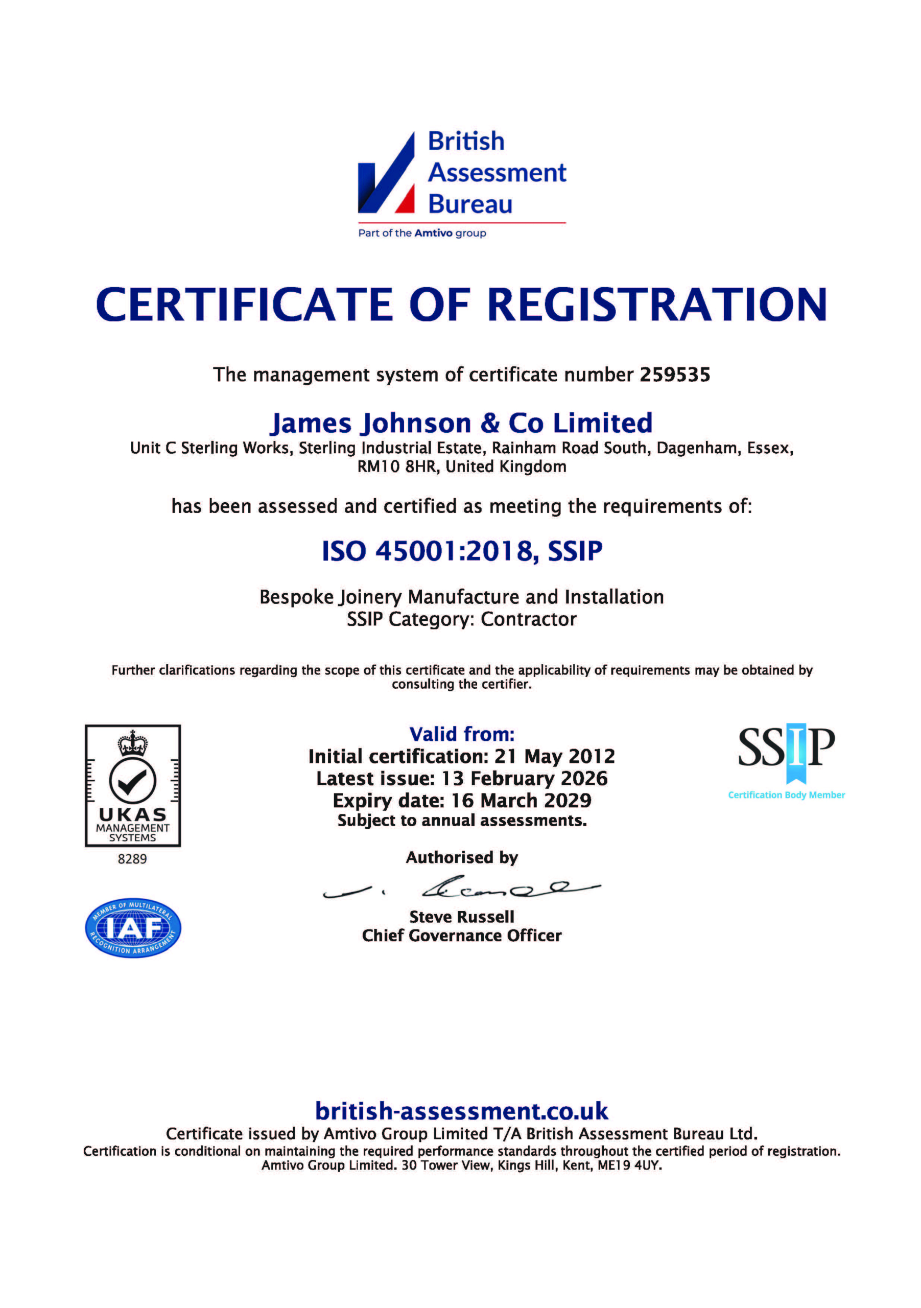 James Johnson Co Limited – ISO 45001 Expiry 16-03-2029